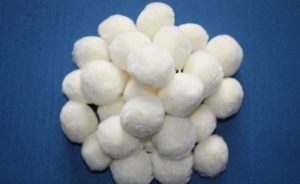 ◆改性纖維的質(zhì)量標(biāo)準(zhǔn)中捆扎強(qiáng)度是一個(gè)重要指標(biāo),有的廠家生產(chǎn)的纖維球指標(biāo)較低,丘陵污水處理裝置的過濾器曾使用ф0.2mm的纖維絲,吊0.3kg重物無(wú)脫落現(xiàn)象的纖維球,使用一個(gè)月后,纖維球大量散開.形成棉絮塊,堵塞篩網(wǎng)又不易清洗,只能更換。后改用ф0.lmm的纖維絲吊05kg重物無(wú)脫落現(xiàn)象的纖維球纖維球無(wú)散開現(xiàn)象,只有脫絲現(xiàn)象。